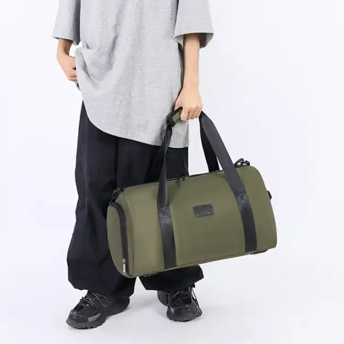 This casual and functional travel duffel bag in mustard yellow is designed for the modern explorer. Whether you’re heading to the gym, a weekend getaway, or a business trip, this stylish and spacious bag is the perfect companion. Its sleek design is matched by durable construction, ensuring that it can handle all your essentials with ease. The adjustable shoulder strap and sturdy top handles offer versatility and comfort for carrying.